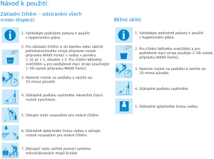 Doporučené oblasti použití: všechny podlahy odolné vůči vodě a alkalickým přípravkům. Nevhodné pro dřevěné, laminátové a textilní podlahy.
