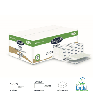 Papírové ručníky Z-Z BulkySoft 84584 – 2 vrst. bílé 100% celulóza, 21 x 24 cm, balení 3000 ks