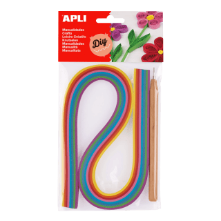 APLI quilling papírové proužky – sada, s rolovacím nástrojem, mix barev